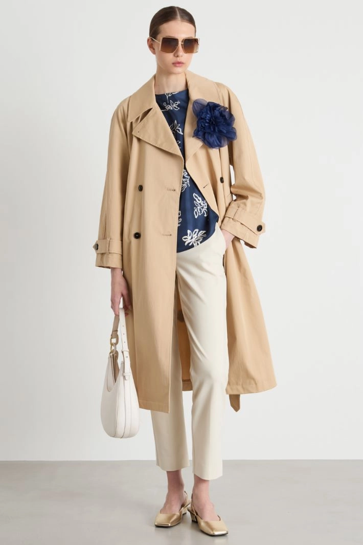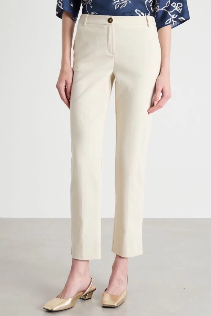 Slim-fit trousers crafted in a double-faced stretch cotton blend, featuring belt loops, front French pockets and rear welt pockets. Fastening with a button and concealed zip.
