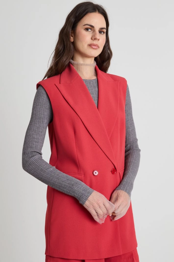 Straight-fit gilet in flowing twill, with peak lapel collar, sleeveless, double-welt side pockets with flap and central vent on the back. Double-breasted fastening with buttons. Lined.