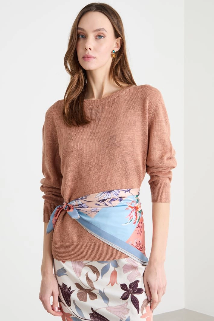 Crew-neck jumper in smooth-knit linen