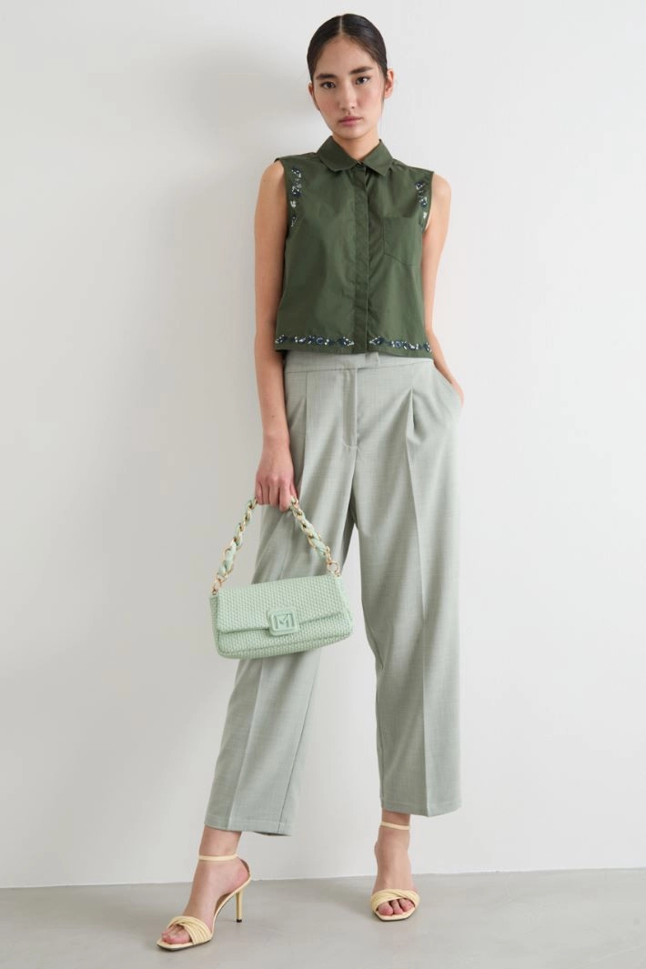 Straight-fit top in pure cotton poplin, featuring embroidery, a shirt collar and a patch pocket on the chest. Concealed front button fastening.