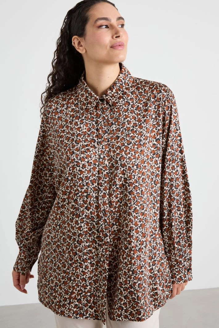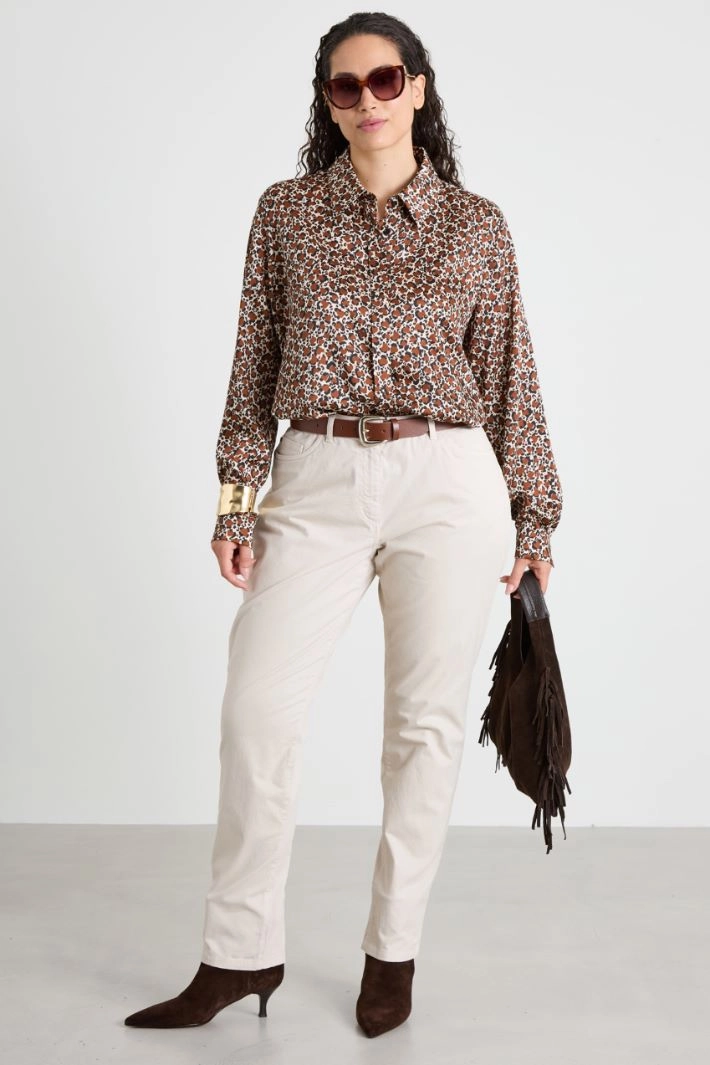 Flowing shirt in printed twill, with classic collar, long sleeves with cuff and button, and hidden button fastening.