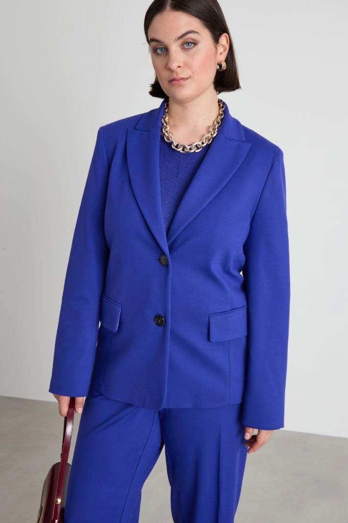 Fitted blazer in viscose blend jersey, with peak lapel collar, long sleeves and flap pockets. Button fastening. Lined.